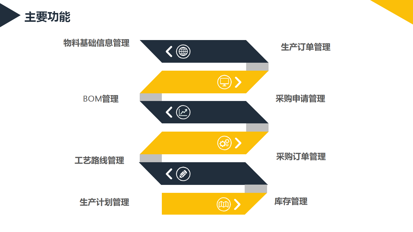 我公司自主研发,拥有完全自主知识产权。该系统采用纯BS架构,功能模块包括跨工厂跨公司的采购管理,库存管理,销售管理,生产计划管理,生产过程管理,BOM管理,工艺路线管理,工程变更管理,物料管理,供应商管理,客户管理等等。各个模块之间的功能实现了无缝集成,实现方式配置灵活,部署快捷,维护方便,可以根据客户业务和管理需求进行快速的二次开发。